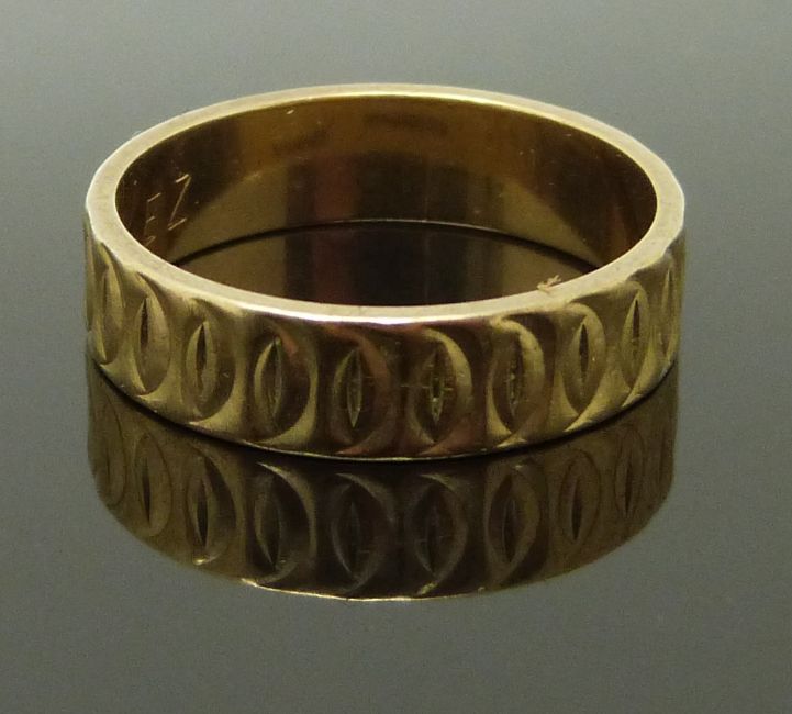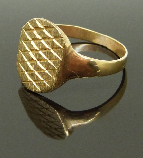 A 9ct gold ring and a 9ct gold signet ring with textured decoration, size O/P & V, 6.37g