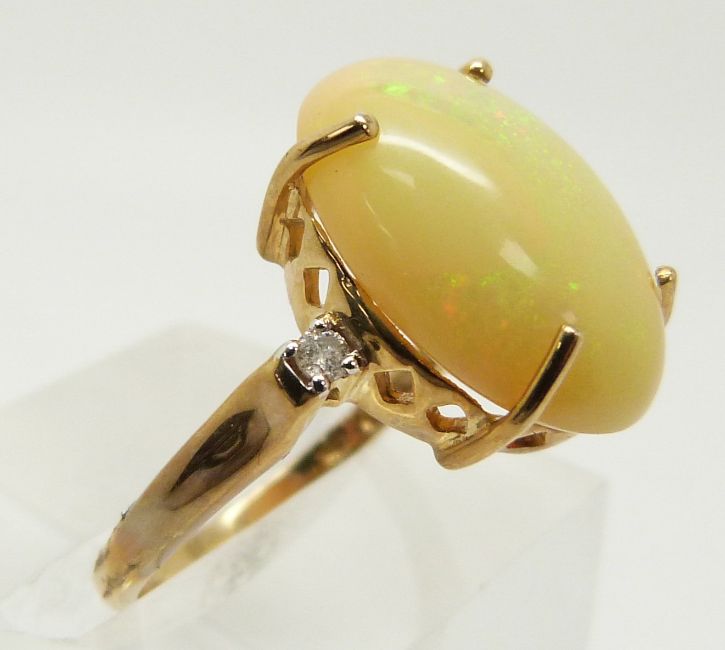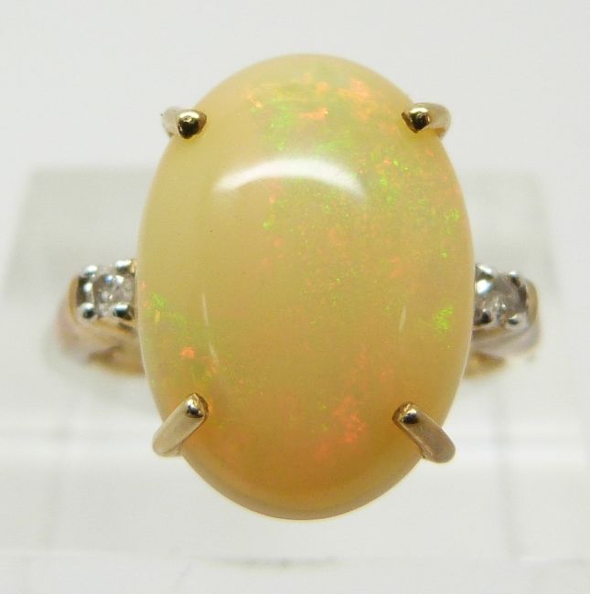 A 9ct gold ring set with a large opal cabochon and diamonds, 3.6g, size O