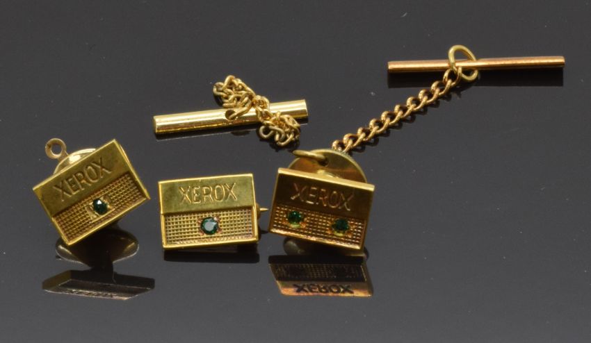 A 9ct gold brooch and two 9ct gold pins, 4.5g