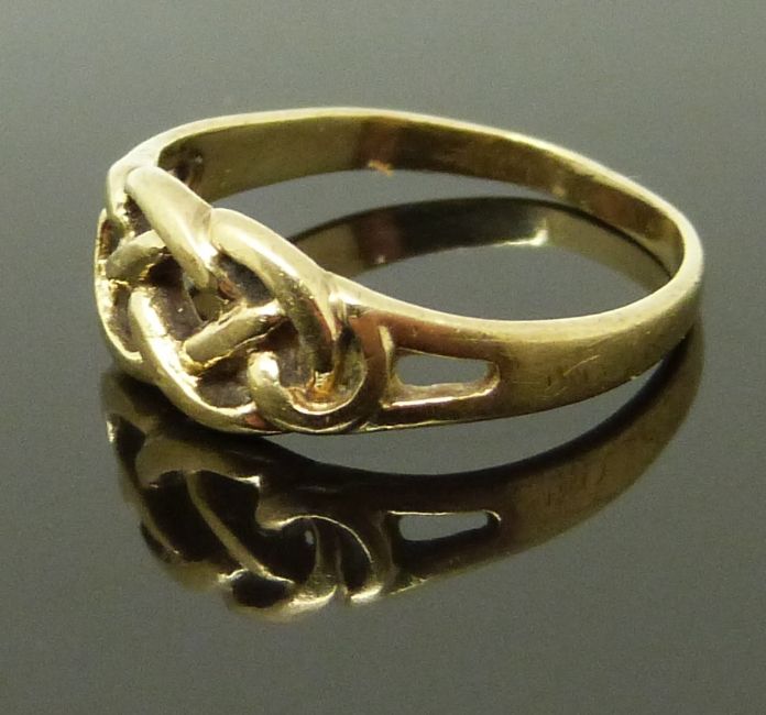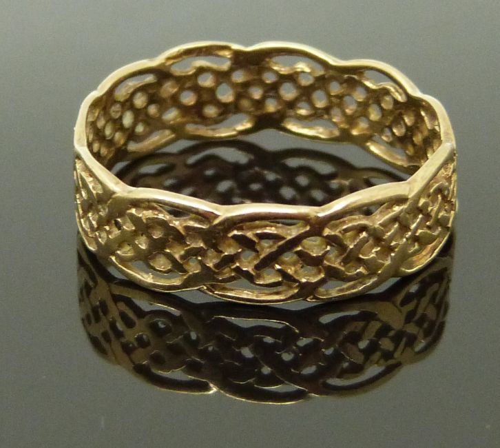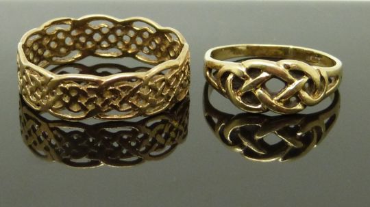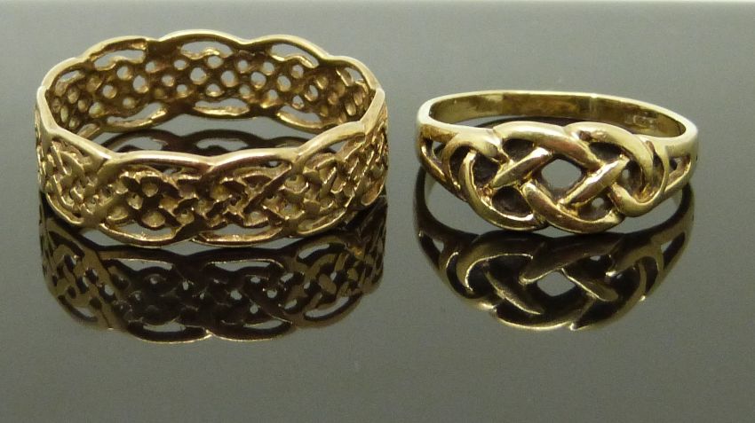 Two 9ct gold rings of Celtic design, size L & S/T, 4.12g