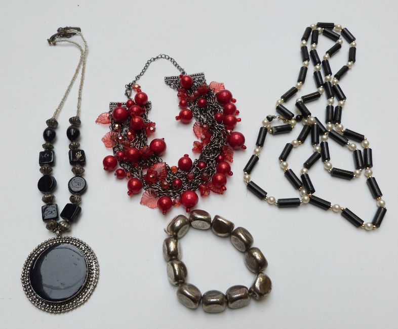 A collection of costume jewellery including beads, etc