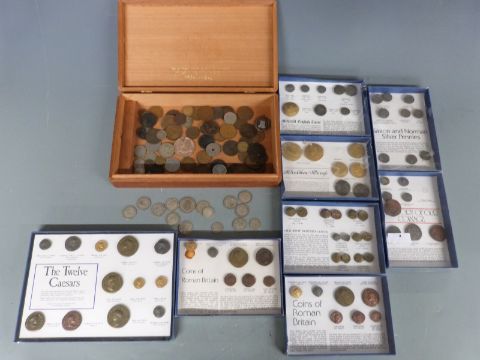 Quantity of coins including 81g of pre 1947 silver and replica displays of coins