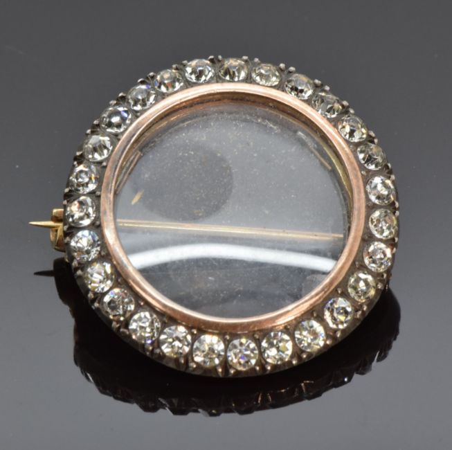 Victorian locket brooch set with foiled paste, 2.3cm diam