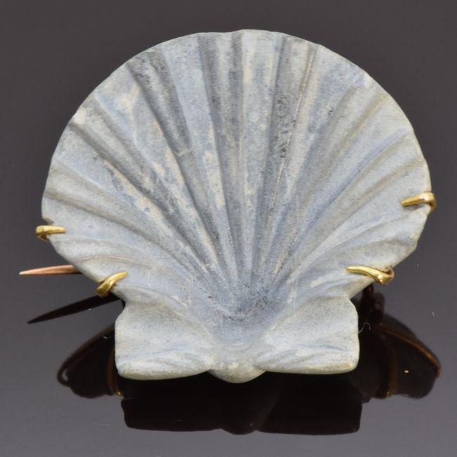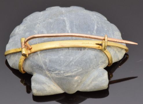 Victorian brooch set with a hardstone carved shell, 3.3 x 3cm
