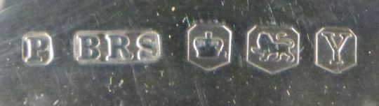 Hallmarked silver tray with shaped edge and Cheshire Regiment military interest inscription, Sheffield 1966 maker Pinder Brothers, diameter 20.5cm, weight 252g