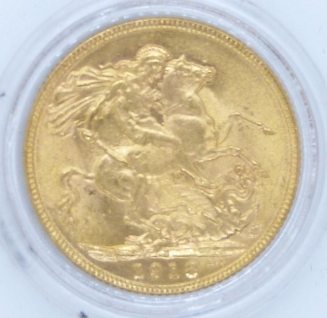 George V 1918 Indian Mint gold full sovereign, in deluxe case with certificate