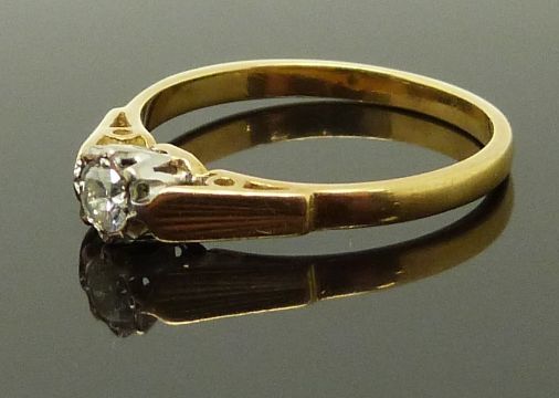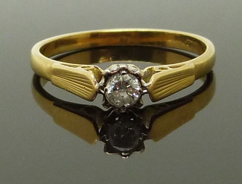 An 18ct gold ring set with a round cut diamond, size K/L, 2.19g