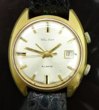 Three gentleman's wristwatches comprising Seiko SQ ref. 7123-8300-P, Belart Alarm and a Poljot, all on leather straps. largest case diameter 35mm.