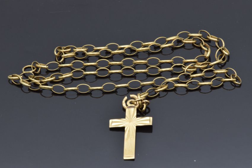 A 9ct gold belcher chain and 9ct gold cross, 6g