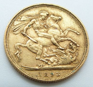 Queen Victoria 1893 veiled head gold full sovereign
