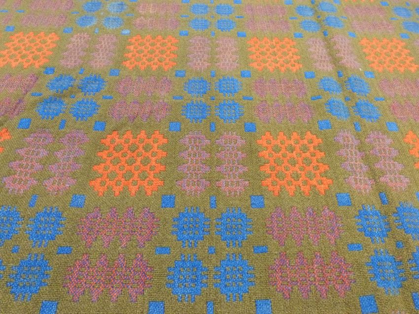 Welsh tapestry wool blanket, with green ground, 230 x 175cm