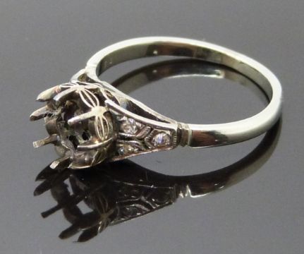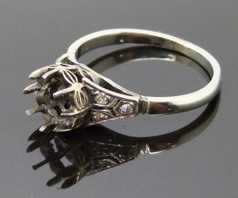 A platinum ring mount and a white gold ring mount set with diamond shoulders, size L & M, 5.00g