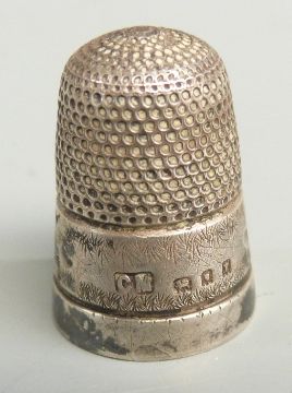 Sixteen various hallmarked silver and white metal thimbles and further thimbles including a mother of pearl example with gold bands