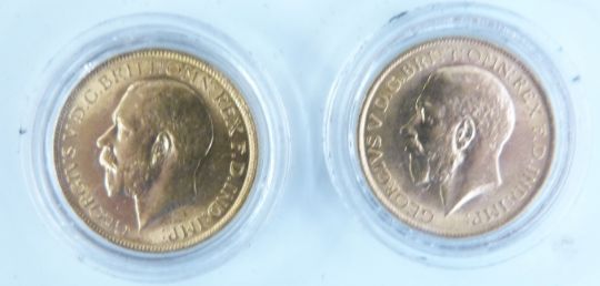 The London Mint Office 'Lost London' gold sovereigns, comprising two gold full sovereigns of George V, 1915 and 1916, in deluxe case with certificate