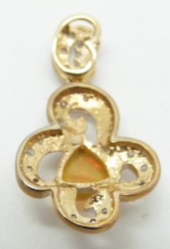 A 9ct gold pendant set with an opal cabochon and diamonds, 3.3g