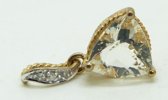 A 9ct gold ring set with a trilliant cut ice opal and zircons, a 9ct gold pendant set with a trilliant cut ice opal and diamonds and a pair of 9ct gold earrings set with a trilliant cut ice opal to each, 4.7g, size M