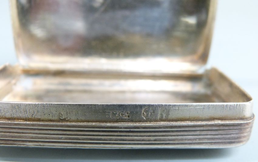 Georgian hallmarked silver snuff box with ribbed decoration, marks indistinct but likely Birmingham 1806, maker's mark possibly H&Co., length 6cm, weight 39g