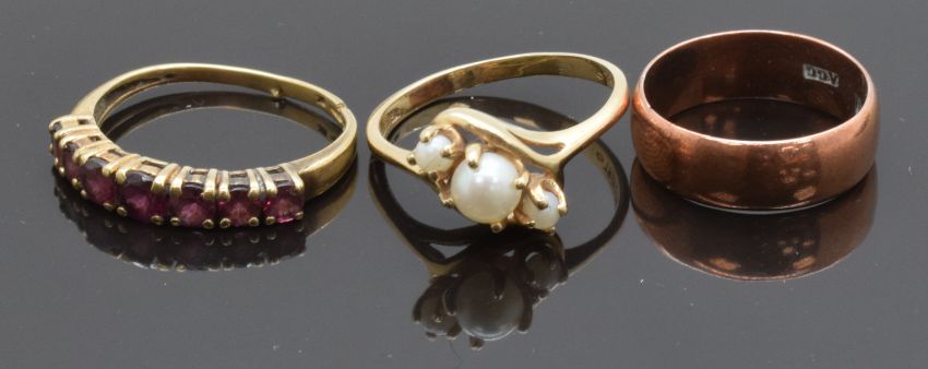 A collection of jewellery including Victorian cut steel buckle, two Victorian agate brooches, Victorian enamel locket, Victorian earrings, 9ct gold ring, flapper bangle, etc