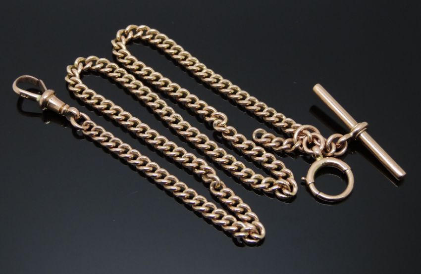 A 9ct rose gold Albert chain, 28.4g