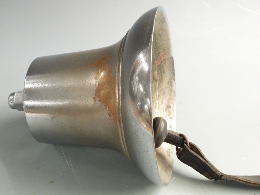 Chrome fire brigade 60s/70s bell by repute ex Commer Fire Engine, Northumberland Fire Brigade, height 27cm