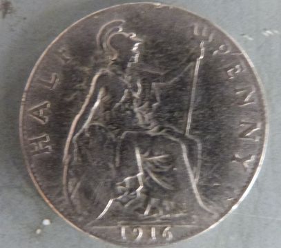 George V 1916 half penny, in silver coloured metal