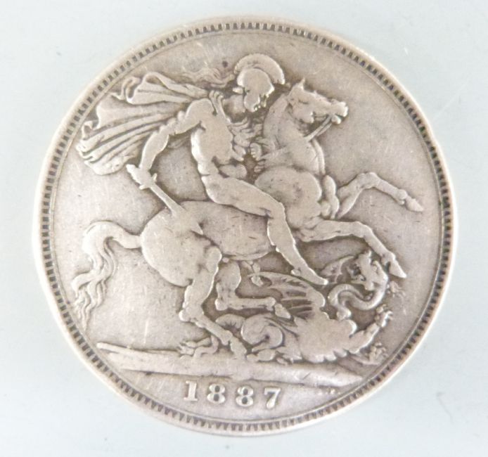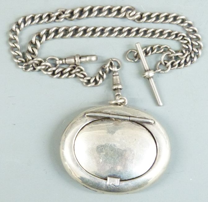 Hallmarked silver calling card holder, Birmingham 1988, 1887 Victorian crown, hallmarked silver watch chain, two lockets and a butter knife, weight of all items 156g all in
