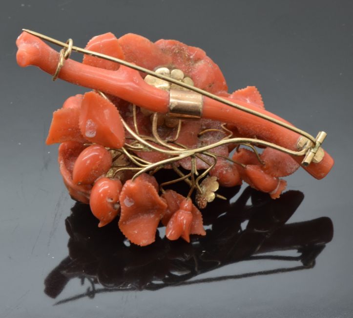 Victorian carved coral brooch in the form of roses, 7 x 4cm