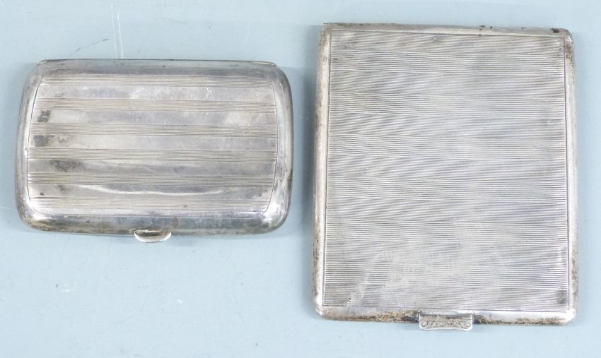 Hallmarked silver cigarette case together with a further cigarette case marked Sterling, weight 164g