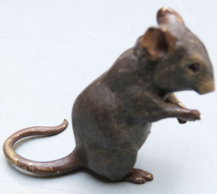 Three Austrian cold painted bronze animals comprising elephant, squirrel with acorn and a mouse, height of tallest 5cm