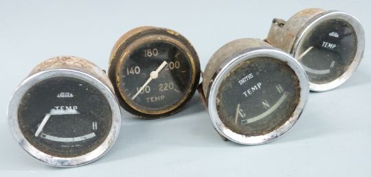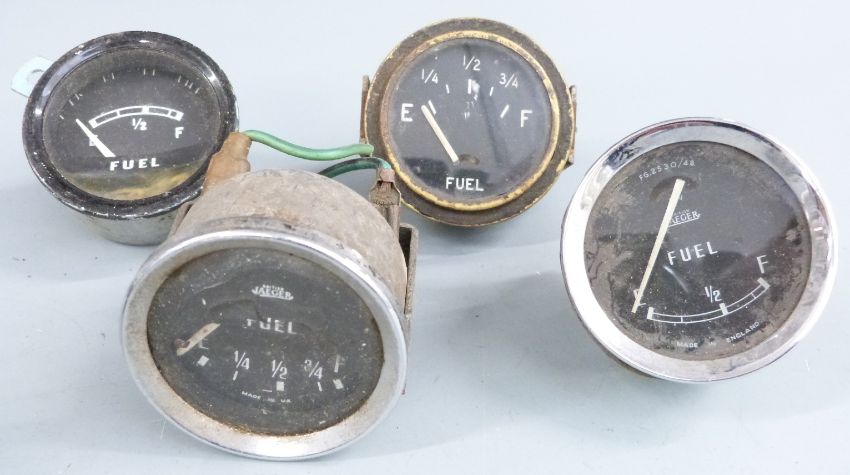 Pre war Standard car dashboard including 0-80mph Smiths speedometer, fuel gauge and oil pressure gauge, together with a quantity of further loose gauges including 0-100mph Smiths speedo numbered 1632, fuel gauges etc