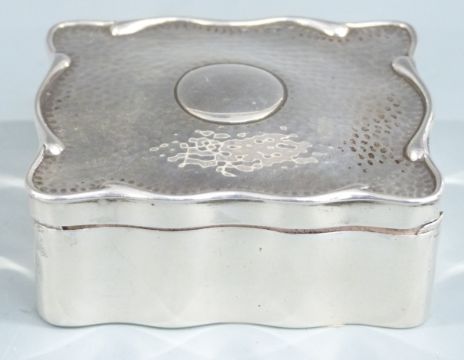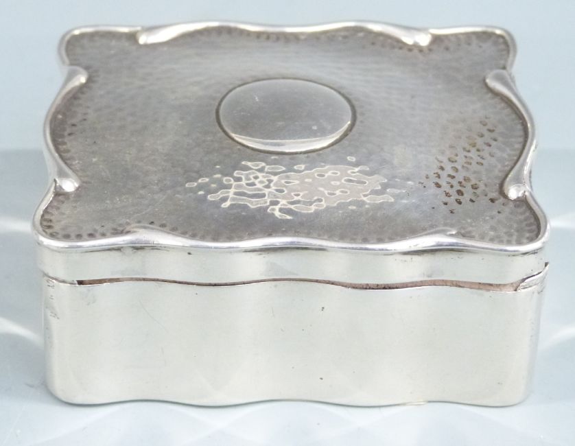 Edward VII hallmarked silver dressing table or trinket pot with hammered decoration and shaped edge, Birmingham 1907, width 7cm together with an oval trinket pot, London 1910 maker Cornelius Desormeaux Saunders & James Francis Hollings (Frank) Shepherd, width 6.5cm
