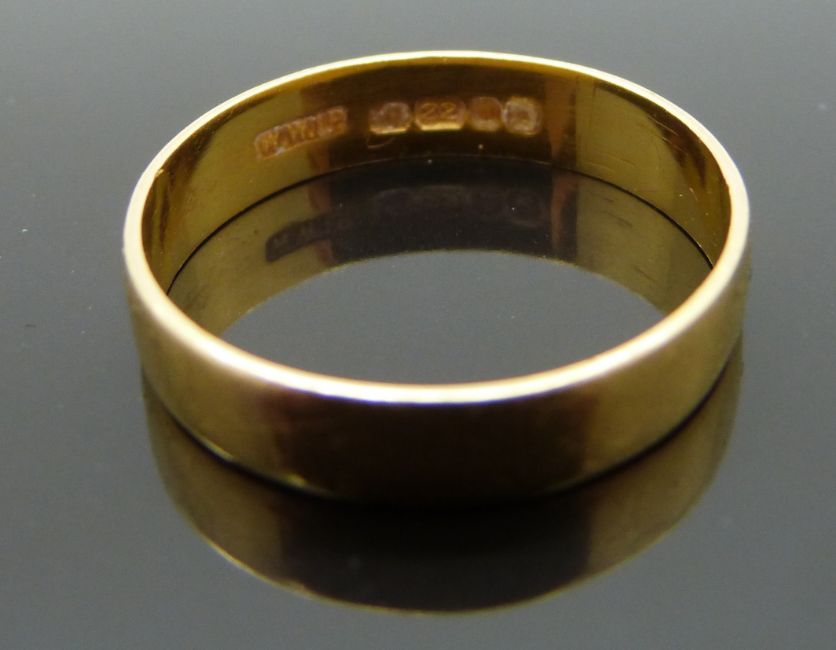A 22ct gold wedding band/ ring, size T, 3.66g