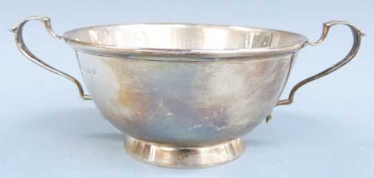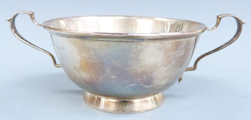 George V hallmarked silver twin handled bowl, Birmingham 1923 maker Sanders & Mackenzie, width 16cm, weight 98g