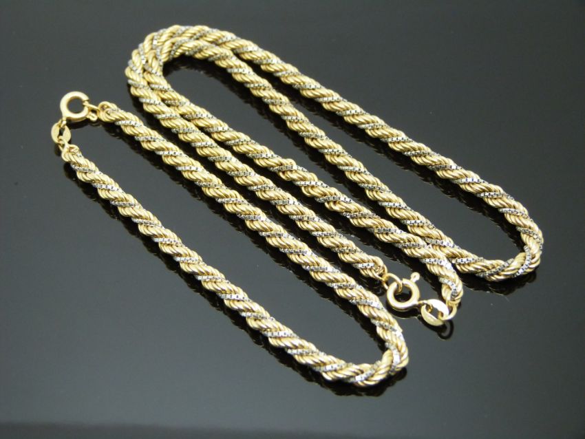 A 9ct gold bi-coloured rope twist necklace and bracelet, 13.9g