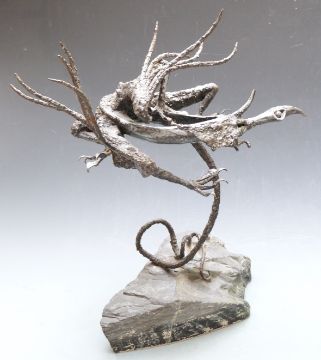 Three modern dragon sculptures in the manner of Walenty Pytel, height of tallest 50cm