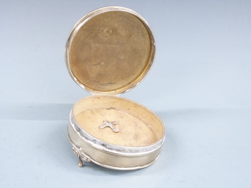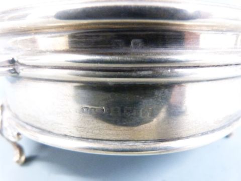 Hallmarked silver circular dressing table box, diameter 11.5cm together with a hallmarked silver mounted perpetual calender