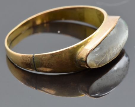Victorian 15ct gold mourning ring set with hair in a glass compartment, size T, 3.26g