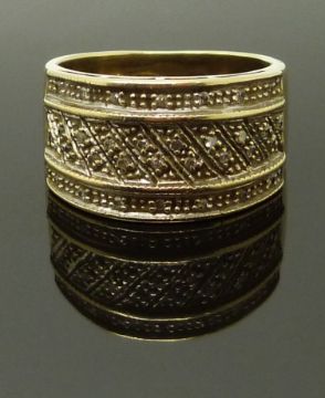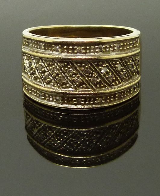 A 9ct gold ring set with diamonds, size O/P, 6.0g