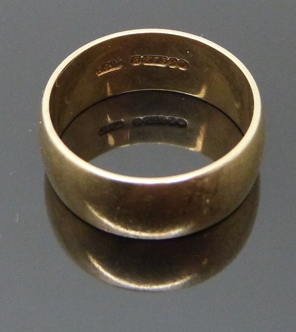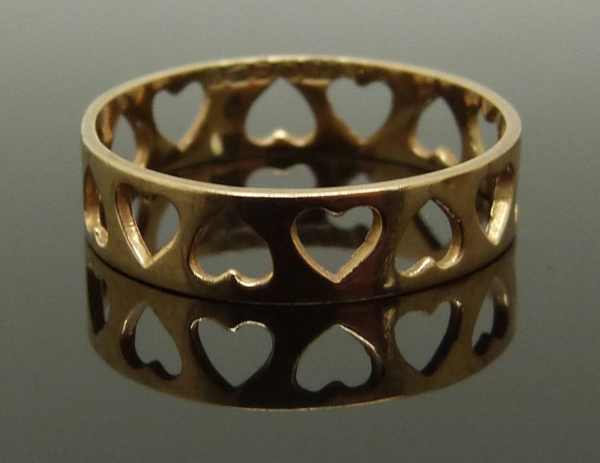 A 9ct gold wedding band and a 9ct gold ring with pierced heart decoration, sizes P & O/P, 6.75g