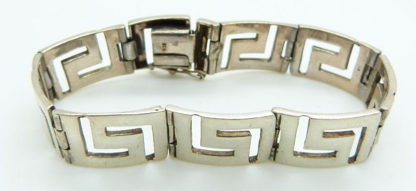 A silver Greek key bracelet, 17.5cm long