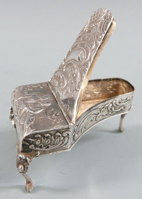 Victorian hallmarked silver novelty trinket box or vesta in the form of a grand piano with embossed decoration, import marks for London 1898, length 7cm, weight 51g