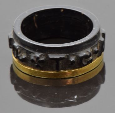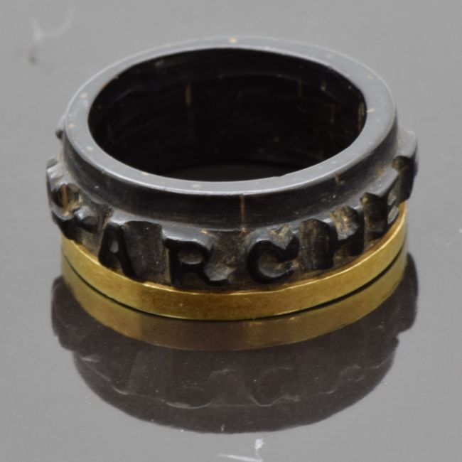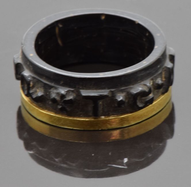 Georgian jet mourning ring carved to read "T.G. Archer Esq", size size J/K, 1.96g