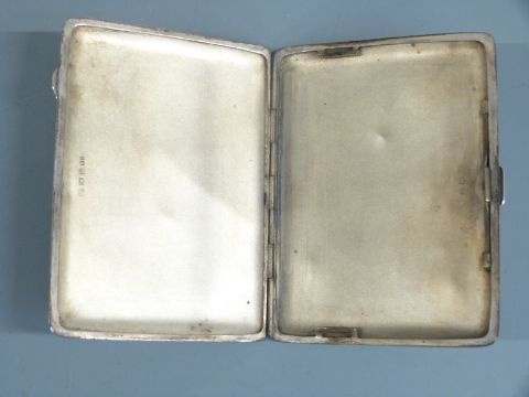 Hallmarked silver cigarette case, Birmingham 1946, length 11.5cm, weight 152g all in and a coin display including a 1951 Festival of Britain crown