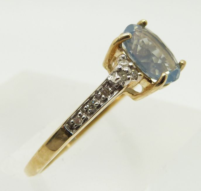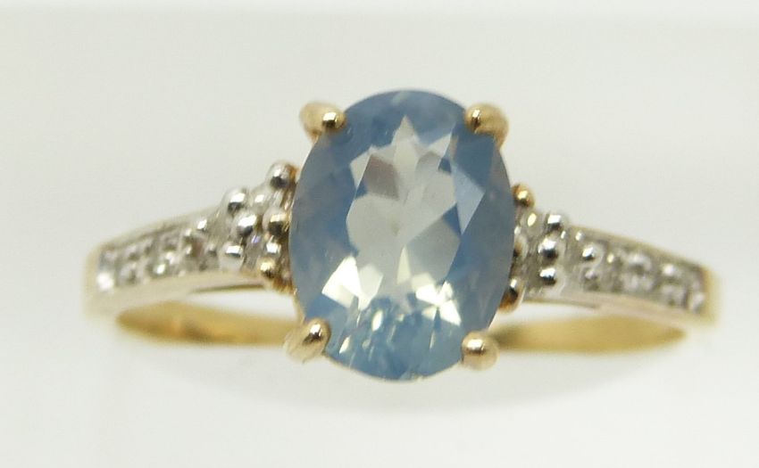 A 9ct gold ring set with an oval blue fire opal and diamonds, 1.8g, size N