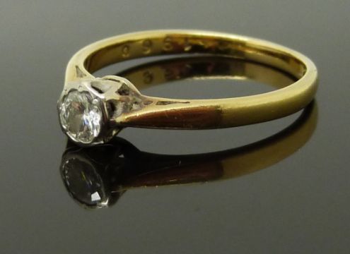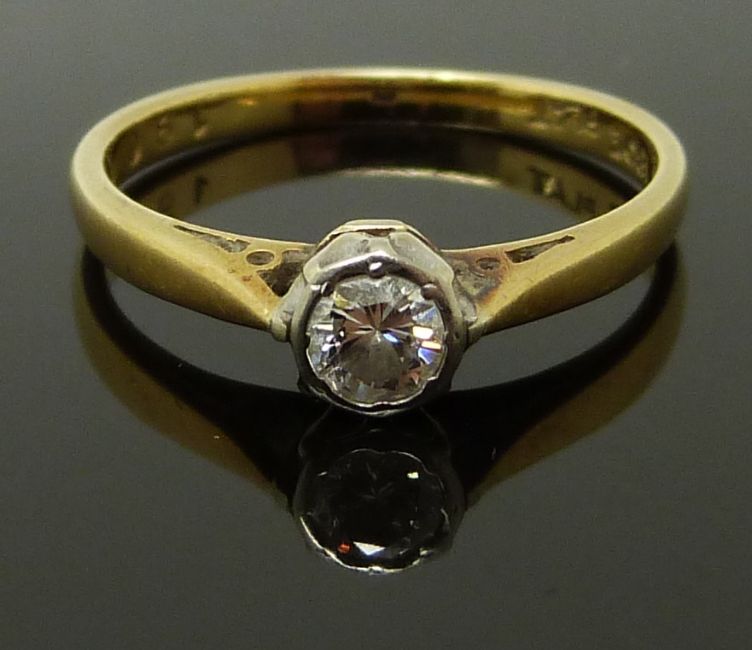 An 18ct gold ring set with a diamond of approximately 0.2ct, size M, 2.3g