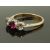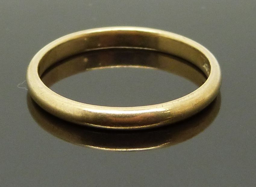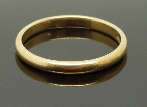 A 9ct gold wedding ring / band, a 9ct gold ring set with a synthetic ruby and paste and a 9ct gold half eternity ring set with diamonds, size O/P, P, P/Q, 5.72g