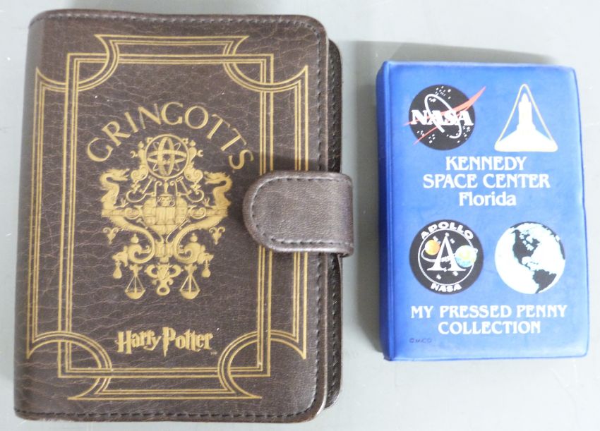 Harry Potter Gringotts savings book, complete, together with a Kennedy Space Centre pressed penny collection