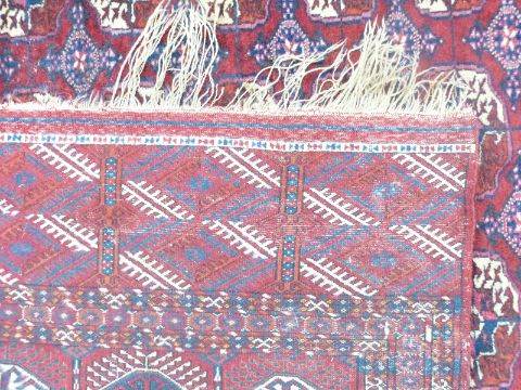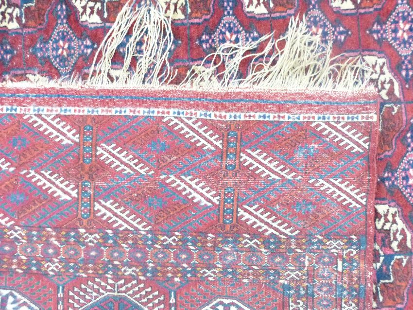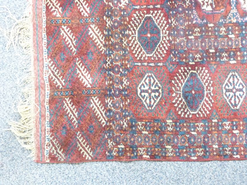 Turkoman rug with gul filled central field on a wine ground, 322 x 224cm