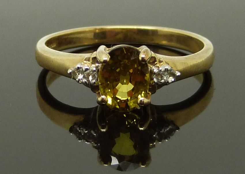 A 9ct gold ring set with citrine and diamonds, size N, 2.30g