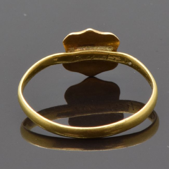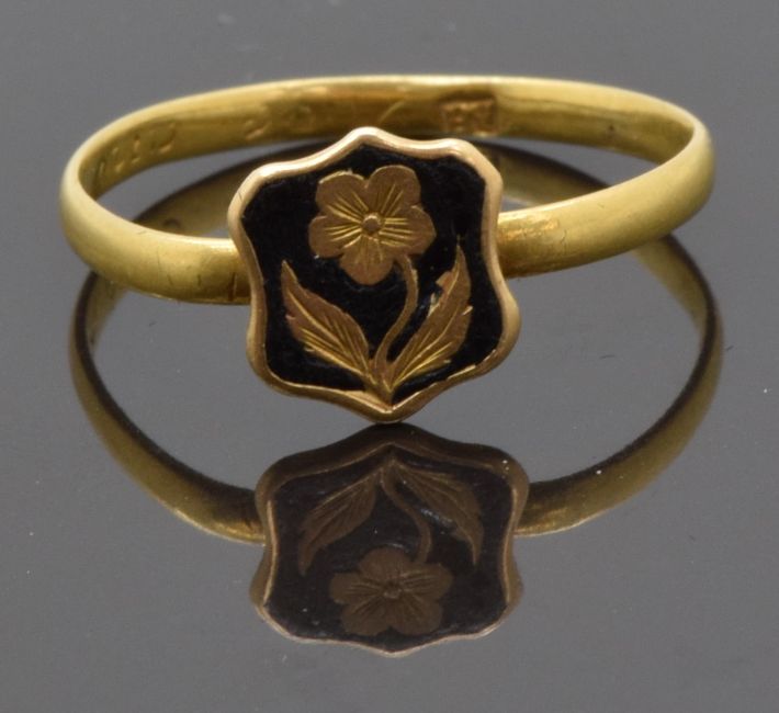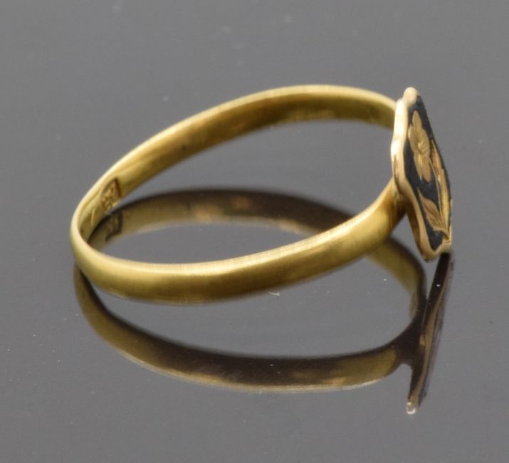 Victorian mourning ring depicting a flower on a black enamel ground, size M, 1.71g
